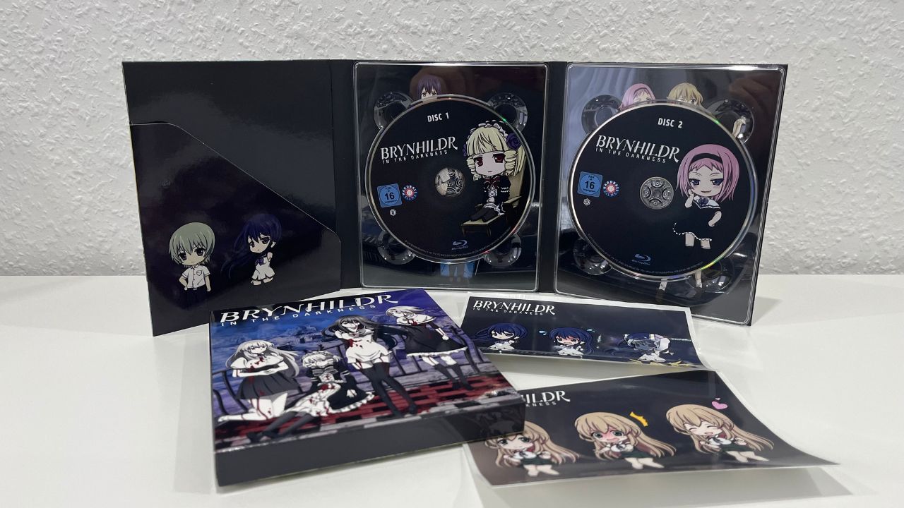 Die Digipack-Neuausgabe von »Brynhildr in the Darkness« ist als Gesamtausgabe auf DVD und Blu-ray erhältlich. Geboten werden alle dreizehn Episoden der Serie sowie die OVA-Episode. Das Bild kommt als 1080p, der Ton mit PCM 2.0 daher. Als Extra liegen fünf Sticker bei.