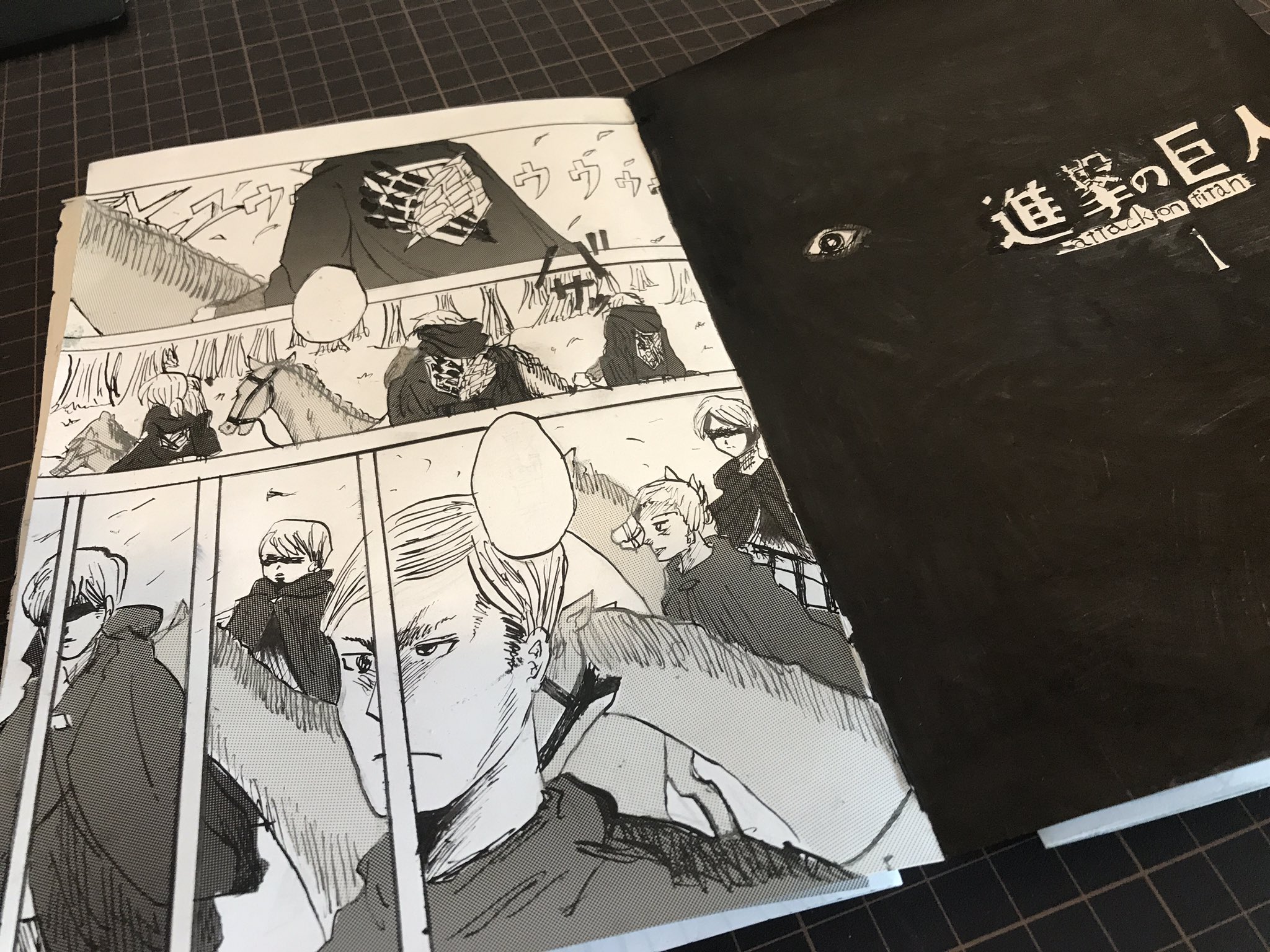Eine Grundschülerin, die offensichtlich ein großer Fan des abgeschlossenen Shonen-Manga »Attack on Titan« (jap.: »Shingeki no Kyojin«) ist, hat ihre eigene Version des ersten Bands der beliebten Reihe von Hajime Isayama erstellt. Besonders beeindruckend ist, dass sie jedes Panel nachgezeichnet und das Ergebnis zu einem Tankobon-Band zusammengefasst hat.