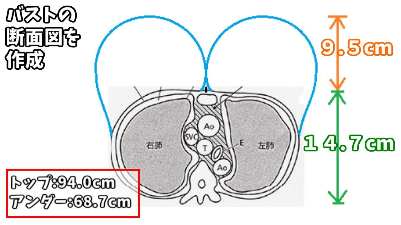Mit diesen Werten und unter Zuhilfenahme seiner komplexen Mathematik-Kenntnissen ermittelte er in der Folge einen Brustumfang von 94 cm. Außerdem hat ihr Brustkorb einen Durchmesser von 14,7 cm und ihre Brüste stehen in der »Spitze« insgesamt 9,5 cm vom Brustbein ab. Wieder einmal belehrt uns die Mathematik eines Besseren. Bilder zur Berechnung seht ihr wie immer unten.