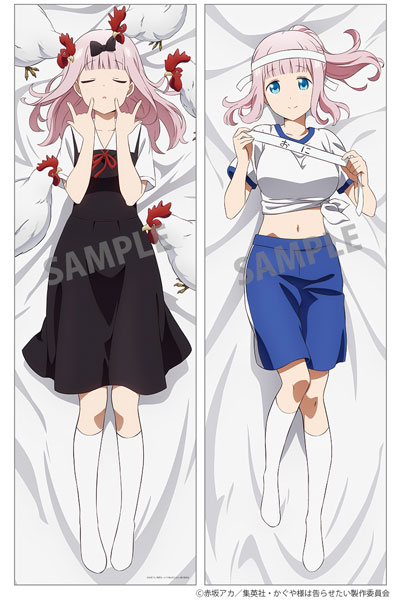 Die neuen Dakimakura-Cover, die Kaguya Shinomiya, Chika Fujiwara, Ai Hayasaka und Kei Shirogane zeigen, erscheinen im Format 160×50 Zentimeter und werden aus den Materialien Polyester, Baumwolle und Elasthan hergestellt. Der Release ist für Dezember 2023 geplant.