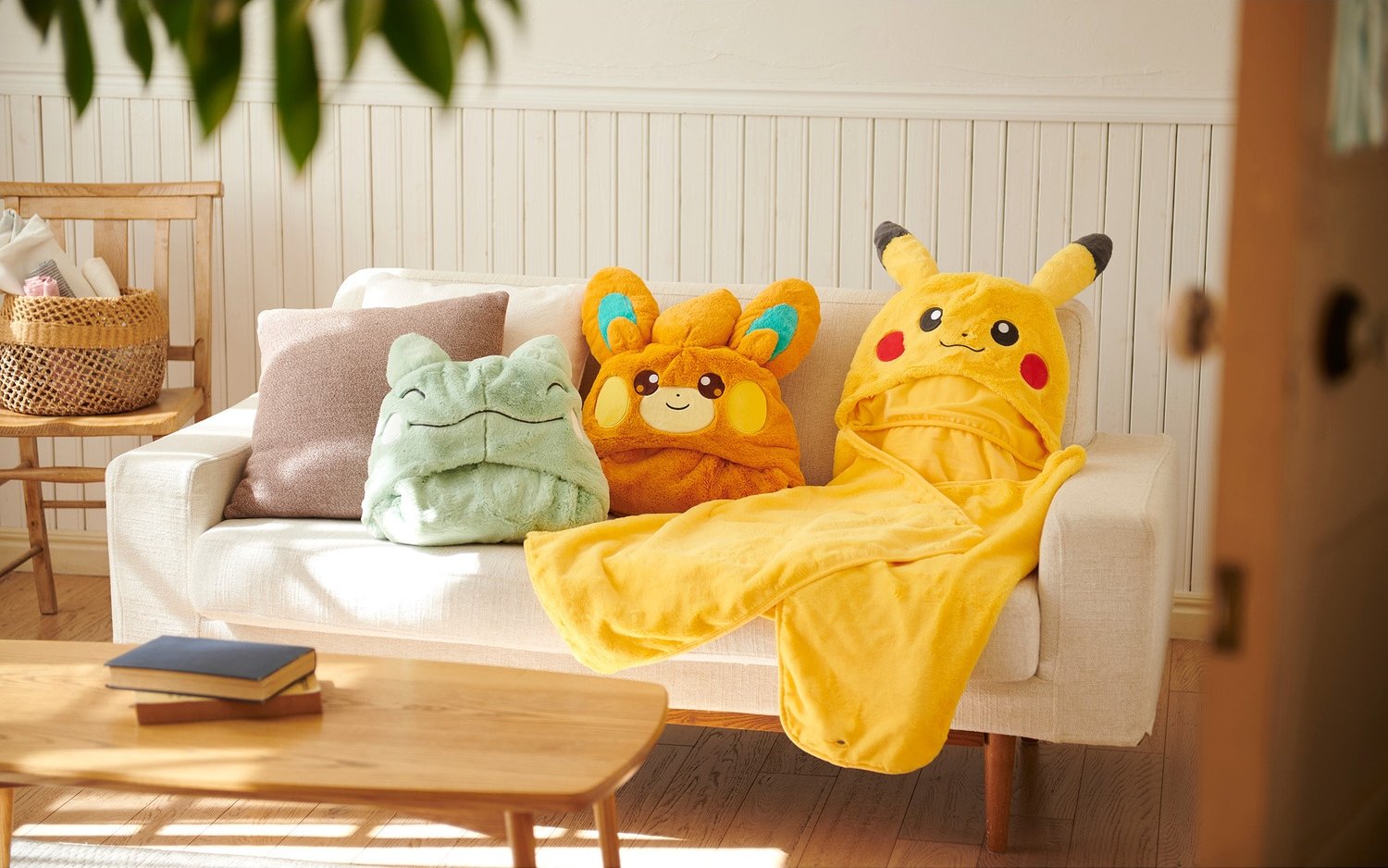 Die drei neuen Decken zu den Pokémon Pikachu, Pamo und Delegator messen eine Größe von jeweils etwa 114 x 150 Zentimeter und werden aus dem Material Polyester hergestellt, während die Knöpfe aus ABS bestehen. Die Decken können darüber hinaus auch als Poncho getragen werden.