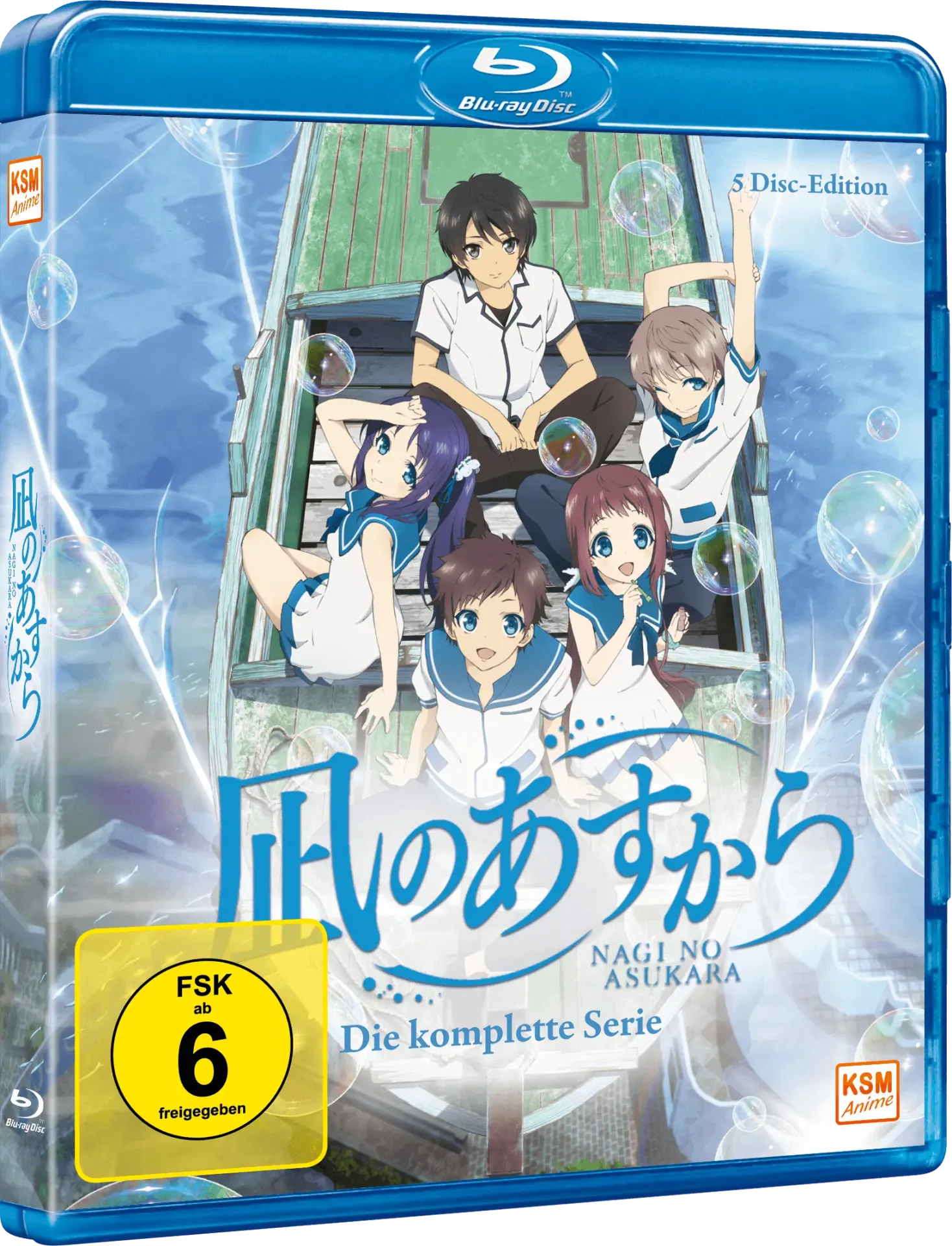 Die Gesamtausgabe von »Nagi No Asukara« ist ab dem 19. Februar 2026 als Blu-ray im Handel erhältlich. Diese beinhaltet alle 26 Episoden der Serie mit deutscher und japanischer Sprachausgabe, die Openings und Endings in der Clean-Version, eine Bildergalerie und Trailer. Eine Vorbestellung ist bereits möglich.